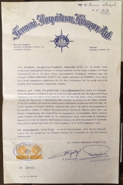 ΓΕΝΙΚΑΙ ΑΣΦΑΛΕΙΑΙ ΚΥΠΡΟΥ ΛΤΔ Posted at h in CYPRUS, INSURANCE POLICIES & RECEIPTS, ΓΕΝΙΚΑΙ ΑΣΦΑΛΕΙΑΙ ΚΥΠΡΟΥ ΛΙΜΙΤΕΔ by IICMuseum 0 Comments 0 Likes Share
