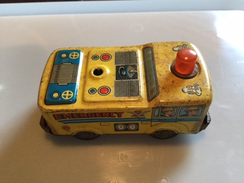 A Japanese tinplate toy representing an emergency car with siren by T.T. company