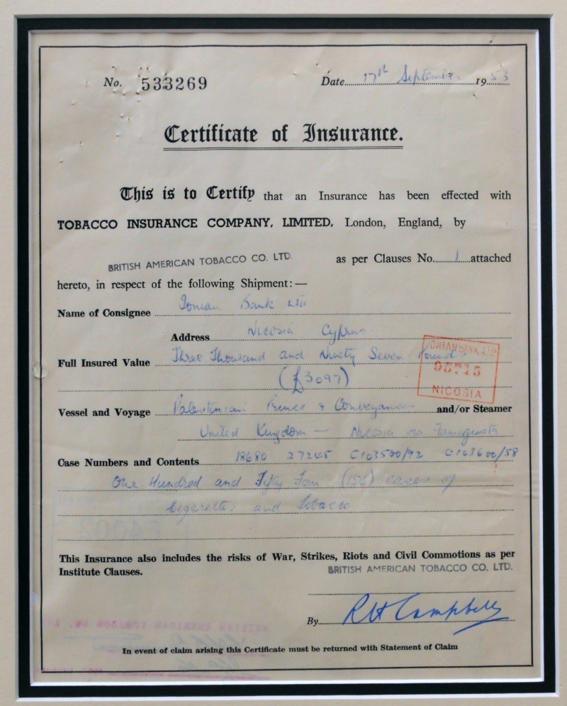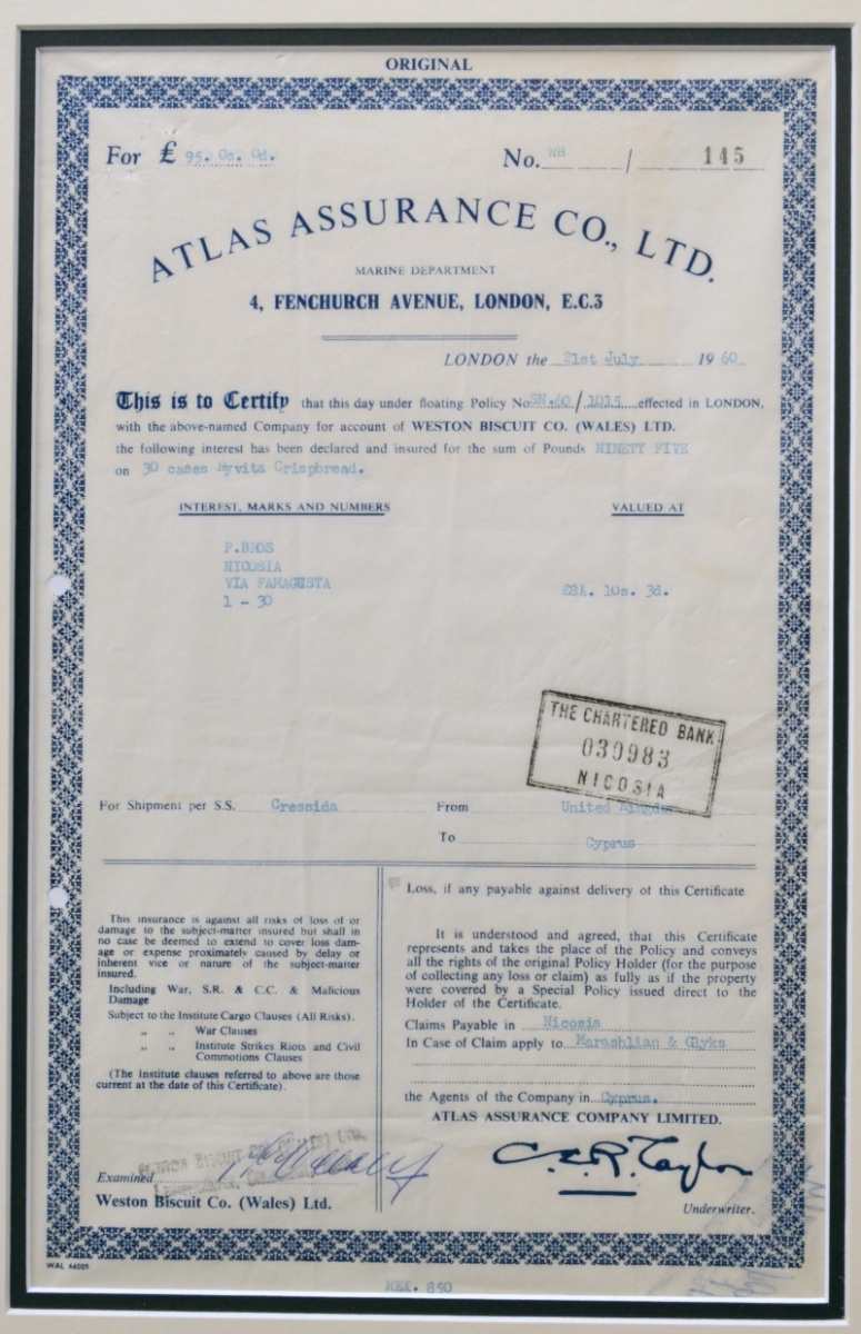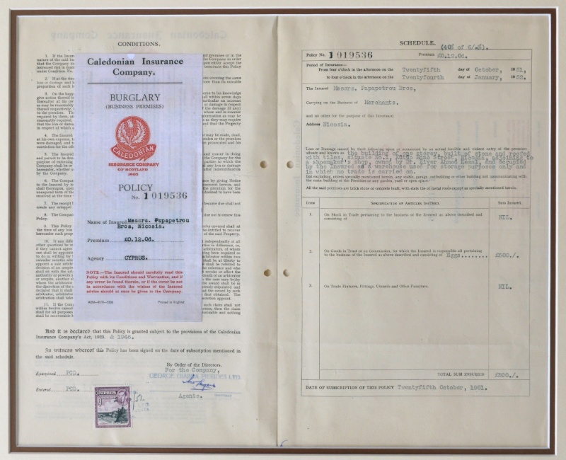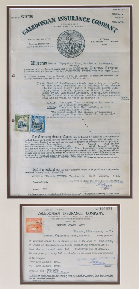Merchandise insured for one year being kept in premises of Mr Asimakis Doukakis