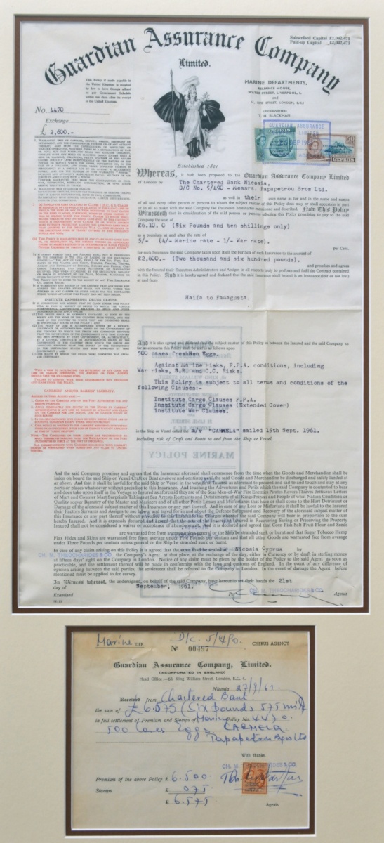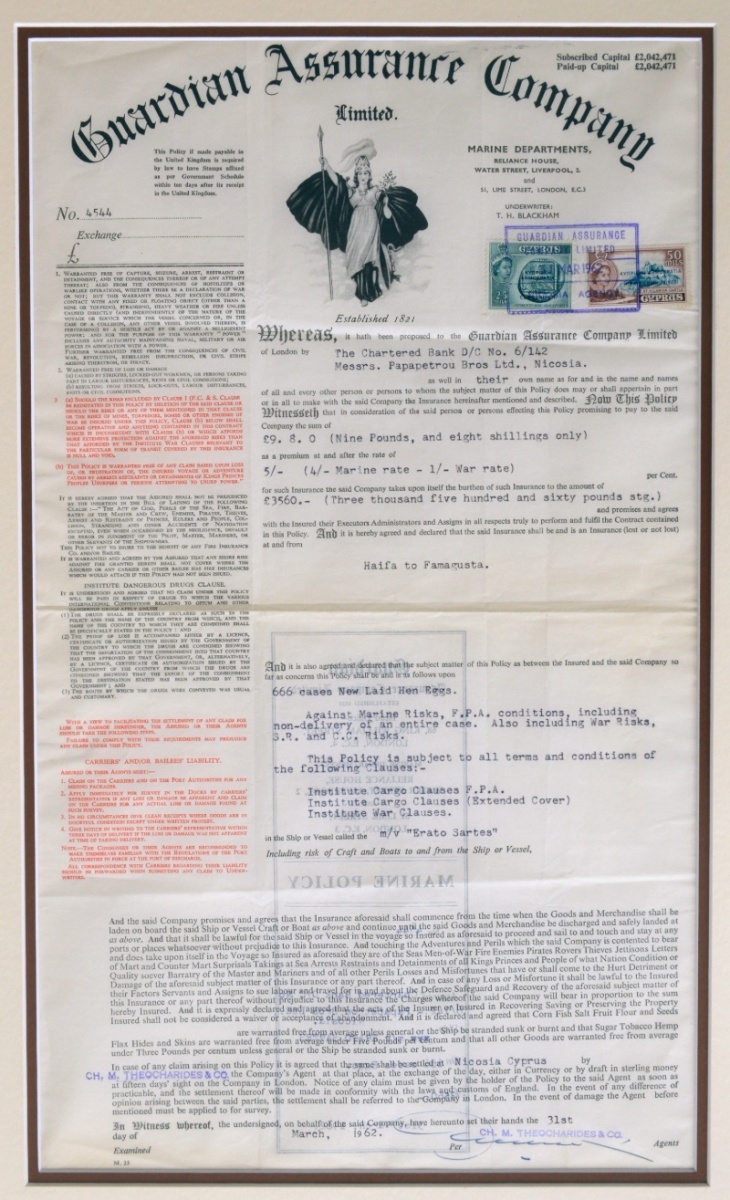 Five hundred cases fresh hen eggs insured from Haifa to Famagusta