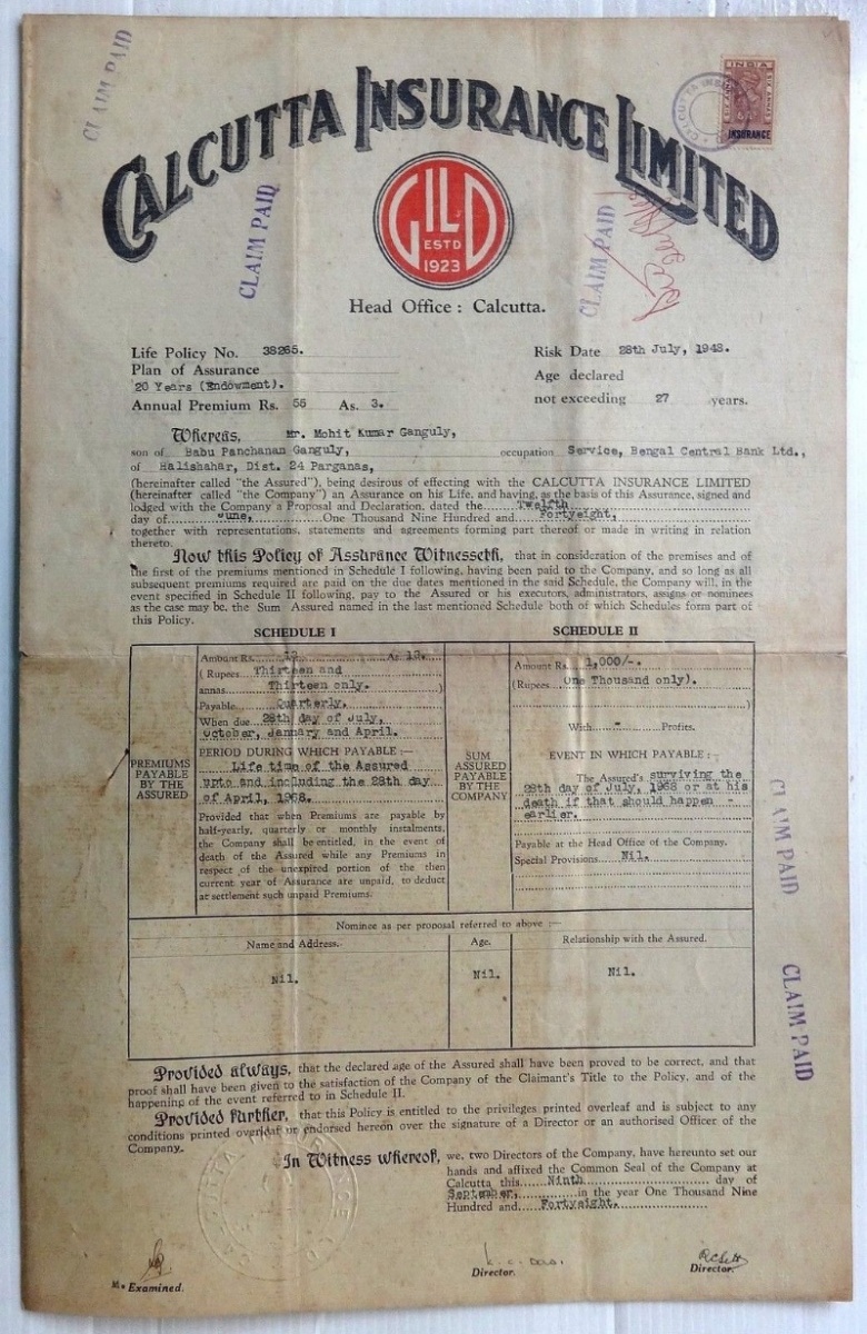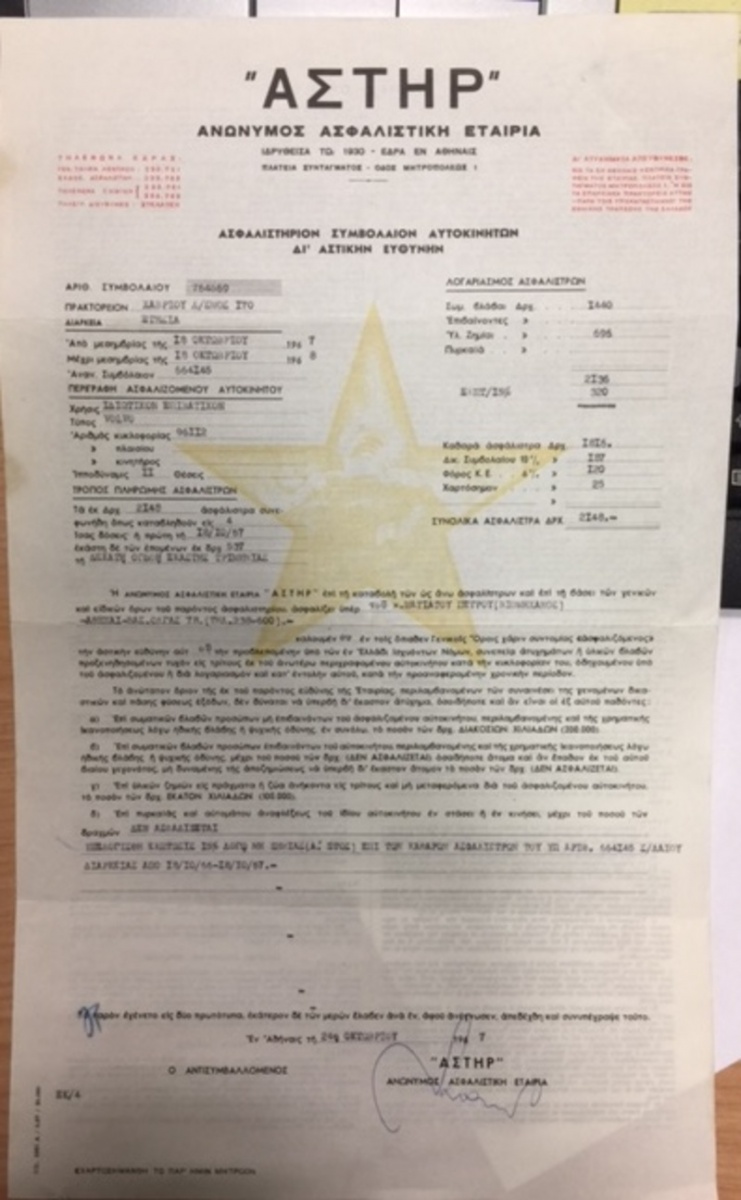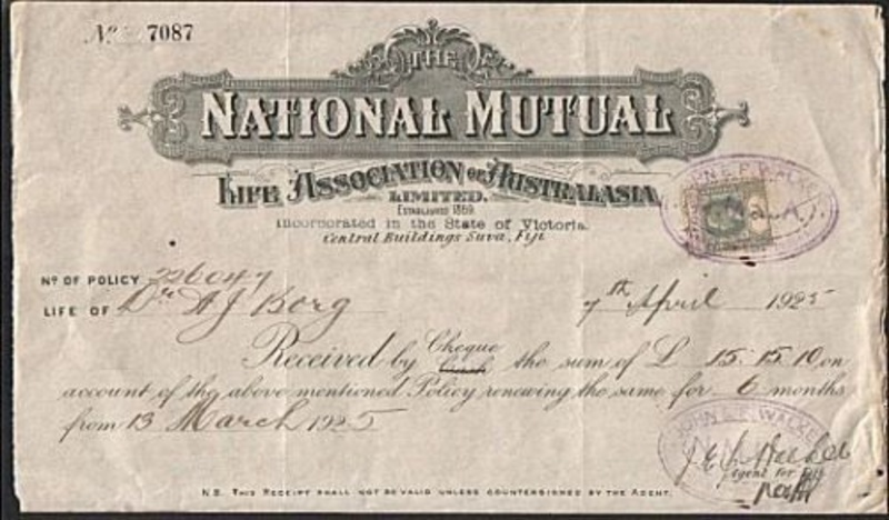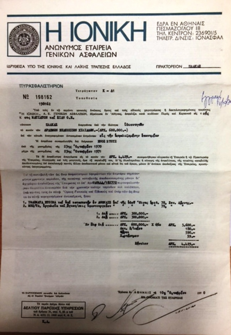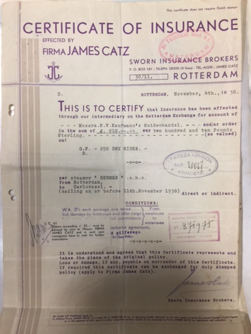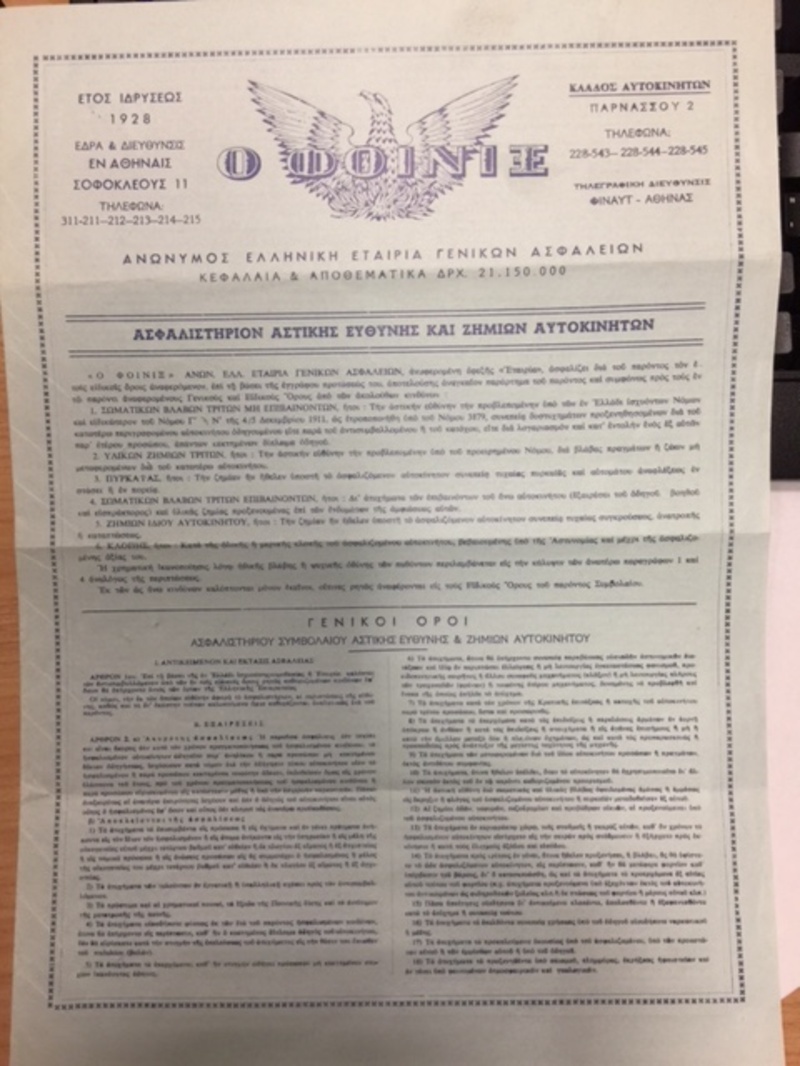 Insurance Policies, Receipts & Documents Posted at h in INSURANCE POLICIES & RECEIPTS by IICMuseum 0 Comments 0 Likes Share 304.THE NATIONAL MUTUAL LIFE ASSOCIATION OF AUSTRALASIA Receipt issued to M Borg 305.GREEN DELTA INSURANCE COMPANY LTD Subject matter: Aseptic packaging plant(recondition) for dairy 306.ADRIATICA SOCIETA ANONIMA DI NAVIGAZIONE Cargo shipped from Constantinople to Praga 311.SOUTHERN LIFE ASSOCIATION OF AFRICA Issued on behalf of Mr & Mrs G.P. Stofberg 313.THE NATIONAL INSURANCE COMPANY OF GREAT BRITAIN LIMITED-ΕΘΝΙΚΗ ΑΝΩΝΥΜΟΣ ΑΣΦΑΛΙΣΤΙΚΗ ΤΗΣ ΜΕΓΑΛΗΣ ΒΡΕΤΤΑΝΙΑΣ General agents Rallis & Plytas 315.FIRMA JAMES CATS Insured for 250 dry hides 316.THE SEA INSURANCE COMPANY LTD 317.Η ΙΟΝΙΚΗ ΑΝΩΝΥΜΟΣ ΕΤΑΙΡΕΙΑ ΓΕΝΙΚΩΝ ΑΣΦΑΛΕΙΩΝ Residents of Plaka Athens 318.ΑΣΤΗΡ ΑΝΩΝΥΜΟΣ ΑΣΦΑΛΙΣΤΙΚΗ ΕΤΑΙΡΙΑ One year policy coverage 319.ΑΛΛΑΙΑΝΣ ΑΓΓΛΙΚΗ ΑΣΦΑΛΙΣΤΙΚΗ ΕΤΑΙΡΙΑ ALLIANCE ASSURANCE COMPANY LIMITED One year policy coverage 320.Ο ΦΟΙΝΙΞ On behalf of Ms Keti Matiatou 321.ATLAS ASSURANCE COMPANY LIMITED Groceries insured on behalf of Mr Papapetrou 322.ROYAL INSURANCE COMPANY LIMITED Insured amount of seven thousand rupees 323.ROYAL INSURANCE COMPANY LIMITED Insured amount of twenty five thousand rupees 324.J.S.HOLT MOSELEY LIMITED Ten cases cotton yard 325.FLEMING SHAW CO LTD Insured amount of three hundred and ninety pounds sterling 331.THE EAGLE STAR BRITISH DOMINIONS One bale sundry p/goods 332.CALCUTTA INSURANCE LIMITED Lifetime of the assured 333.THE METROPOLITAN INSURANCE COMPANY LIMITED Life insurance for V.M.Rajkotia 334.THE STATE ASSURANCE COMPANY LIMITED Cargo insured 335.PEARL ASSURANCE COMPANY LIMITED Cargo insured 336.THE METROPOLITAN INSURANCE COMPANY LIMITED Life insurance for T. Meeraiah 337.THE METROPOLITAN INSURANCE COMPANY LIMITED Life insurance for B. B. Paul 338.THE STATE ASSURANCE COMPANY LIMITED Insurance for 26 clerical staff, 19 peons, 1 motor driver, 536 mechanists & laborers and 19 sub constructor’s laborers ◄1...6789►