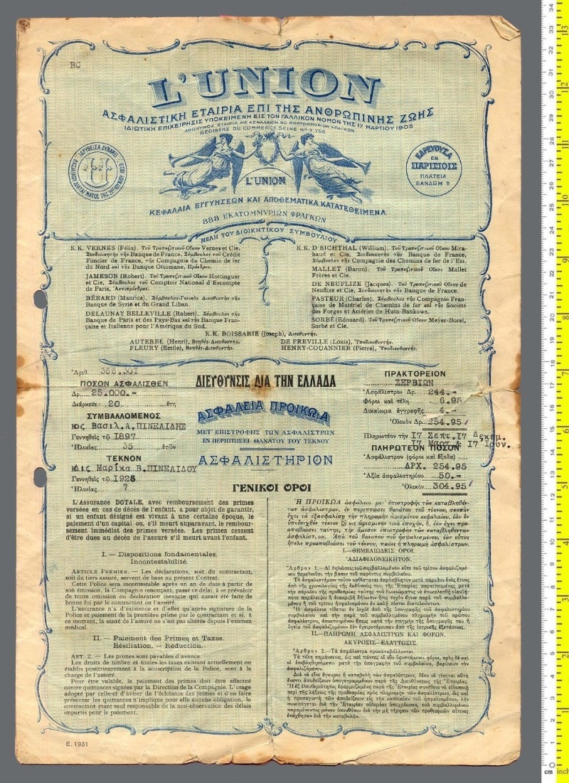 Insurance Policies, Receipts & Documents Posted at h in INSURANCE POLICIES & RECEIPTS by IICMuseum 0 Comments 0 Likes Share 392.ΑΣΠΙΣ ΠΡΟΝΟΙΑ ΑΝΩΝΥΜΟΣ ΕΤΑΙΡΙΑ ΓΕΝΙΚΩΝ ΑΣΦΑΛΕΙΩΝ Insurance for a MG 1100 with reg plate 134805 411.L'UNION ΑΣΦΑΛΙΣΤΙΚΗ ΕΤΕΡΙΑ ΕΠΙ ΤΗΣ ΑΝΘΡΩΠΙΝΗΣ ΖΩΗΣ For Ms Marika Pinelidou 412.Η ΑΝΑΤΟΛΗ ΕΤΑΙΡΕΙΑ ΑΜΟΙΒΑΙΩΝ ΑΣΦΑΛΕΙΩΝ ΖΩΗΣ For Ms Xanthi Koutouli 413.ANDVAKA◄1...89