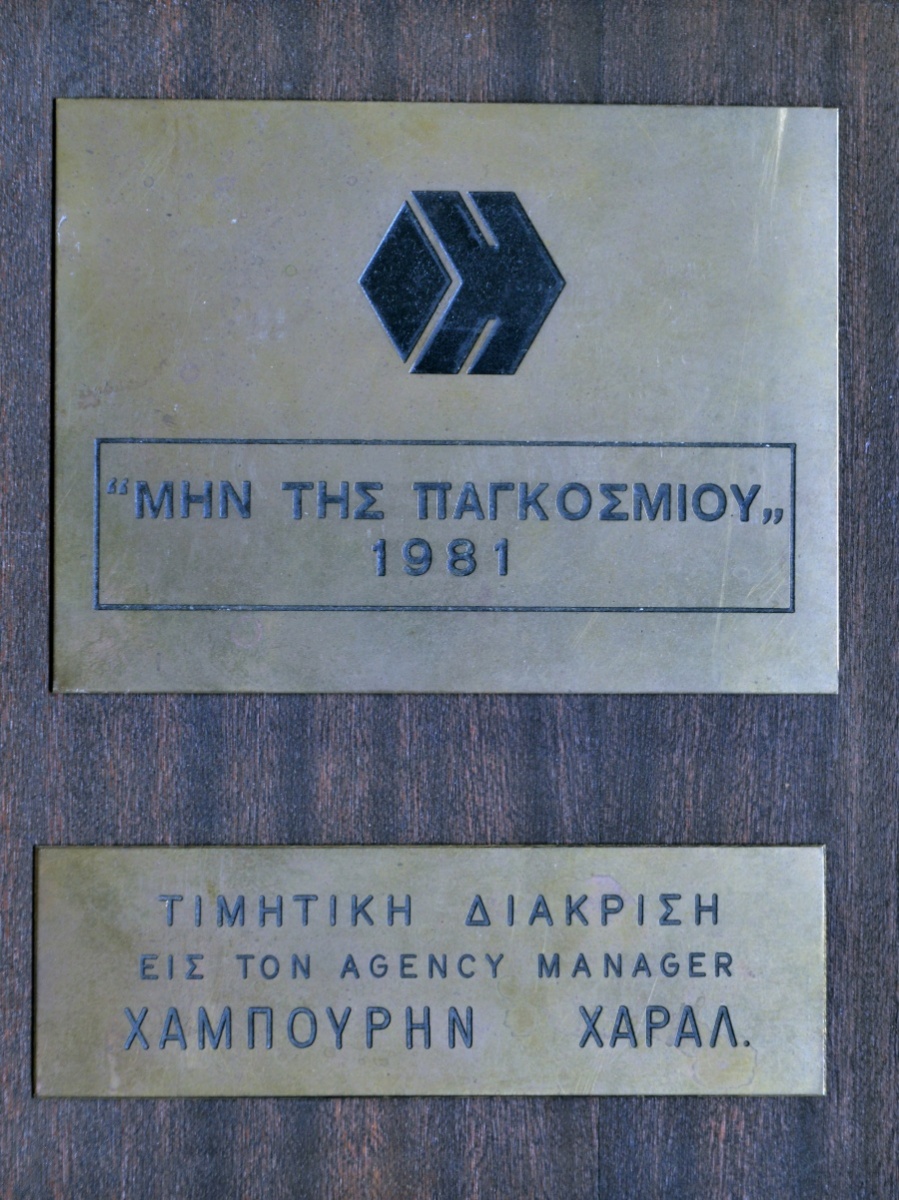 ΤΙΜΗΤΙΚΗ ΔΙΑΚΡΙΣΗ ΕΙΣ ΤΟΝ AGENCY MANAGER ΧΑΜΠΟΥΡΗΝ ΧΑΡΑΛΑΜΠΟ230.THE PRUDENTIAL ASSURANCE COMPANY LTD LONDON