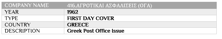 ΑΓΡΟΤΙΚΑΙ ΑΣΦΑΛΙΣΕΙΣ (ΟΓΑ) Posted at h in GREECE, INSURANCE FIRST DAY COVER & LETTERS, ΑΓΡΟΤΙΚΑΙ ΑΣΦΑΛΙΣΕΙΣ (ΟΓΑ) by IICMuseum 0 Comments 0 Likes Share
