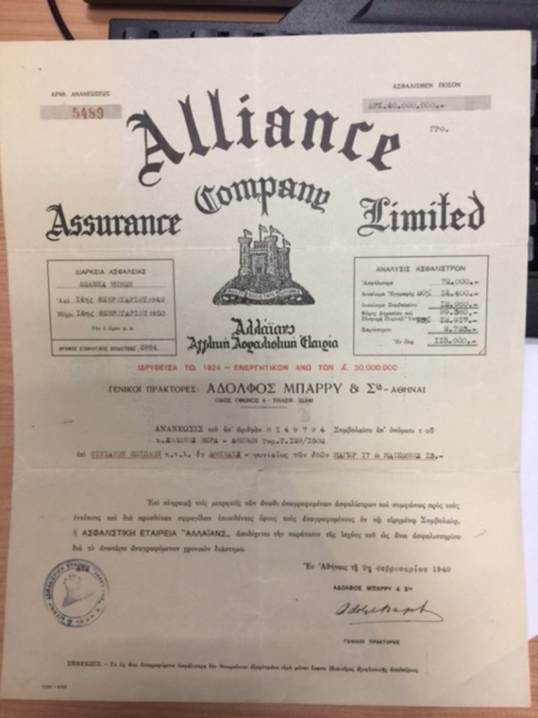 ΑΛΛΑΙΑΝΣ ΑΓΓΛΙΚΗ ΑΣΦΑΛΙΣΤΙΚΗ ΕΤΑΙΡΙΑ-ALLIANCE ASSURANCE COMPANY LIMITED