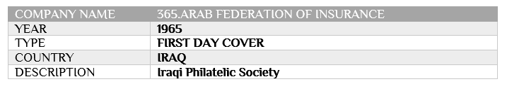 06 Jan ARAB FEDERATION OF INSURANCE Posted at 06:46h in ARAB FEDERATION OF INSURANCE, INSURANCE FIRST DAY COVER & LETTERS, IRAQ by IICMuseum 0 Comments 0 Likes Share