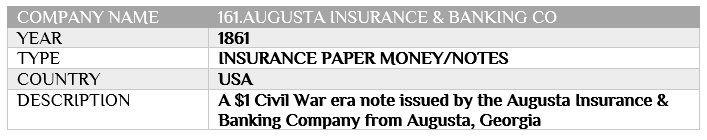 AUGUSTA INSURANCE & BANKING CO Posted at h in AUGUSTA INSURANCE & BANKING CO, INSURANCE & BANK NOTES, USA by IICMuseum 0 Comments 0 Likes Share