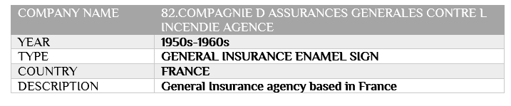in COMPAGNIE D ASSURANCES GENERALES CONTRE L INCENDIE AGENCE, FRANCE, INSURANCE ENAMEL SIGNS