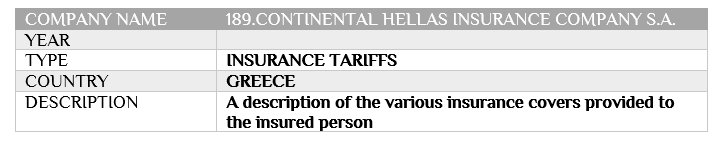 CONTINENTAL HELLAS INSURANCE COMPANY S.A. Posted at h in CONTINENTAL HELLAS INSURANCE COMPANY S.A., GREECE, INSURANCE TARIFFS by IICMuseum 0 Comments 0 Likes Share