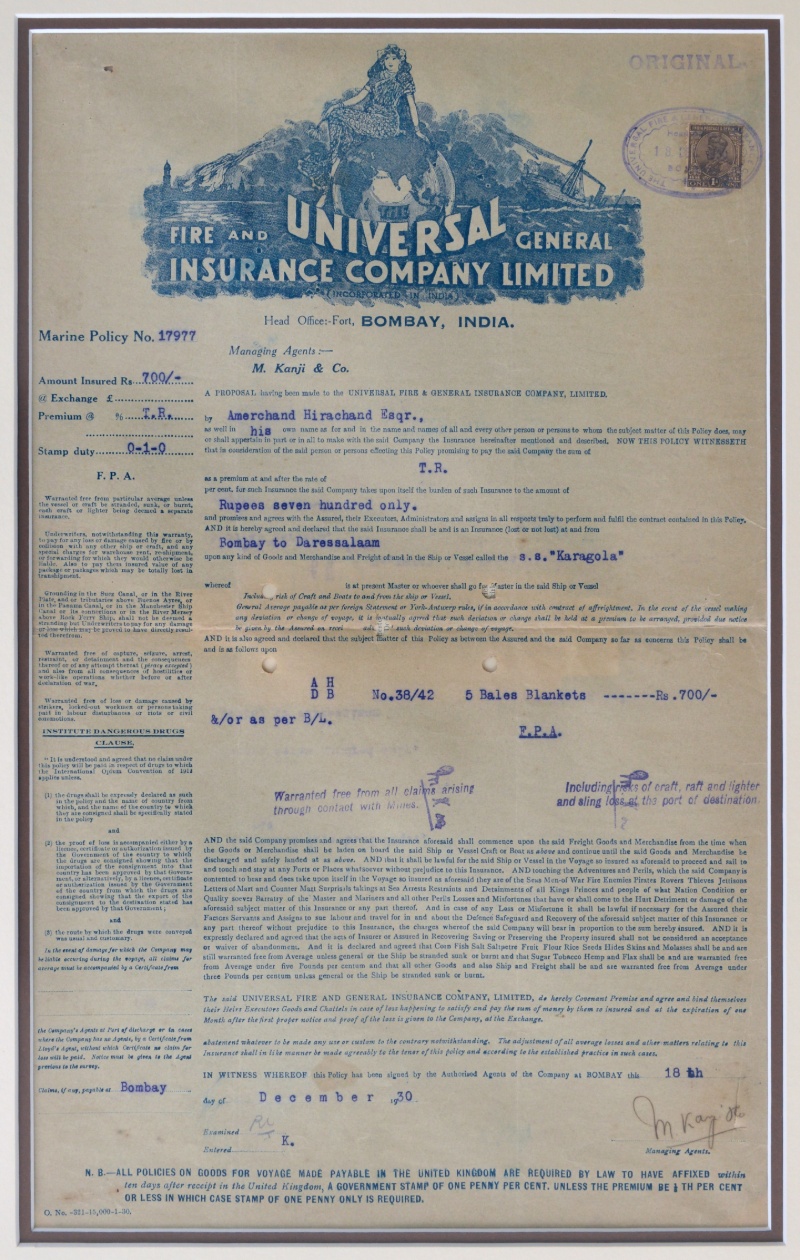 FIRE AND UNIVERSAL GENERAL INSURANCE COMPANY LIMITED Posted at h in FIRE AND UNIVERSAL GENERAL INSURANCE COMPANY LIMITED, INDIA, INSURANCE POLICIES & RECEIPTS by IICMuseum 0 Comments 0 Likes Share