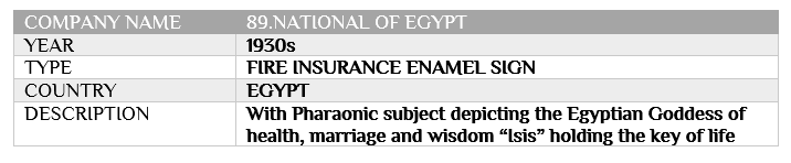 26 Feb NATIONAL OF EGYPT Posted at 00:38h in EGYPT, INSURANCE ENAMEL SIGNS, NATIONAL OF EGYPT by IICMuseum 0 Comments 0 Likes Share 89. NATIONAL OF EGYPT