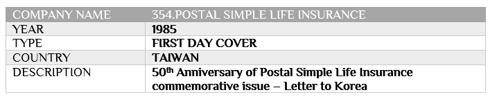 POSTAL SIMPLE LIFE INSURANCE Posted at h in INSURANCE FIRST DAY COVER & LETTERS, POSTAL SIMPLE LIFE INSURANCE, TAIWAN by IICMuseum 0 Comments 0 Likes Share