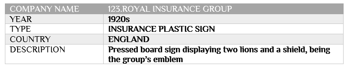 ROYAL INSURANCE GROUP Posted at h in ENGLAND, INSURANCE PLASTIC SIGNS, ROYAL INSURANCE GROUP by IICMuseum 0 Comments 0 Likes Share