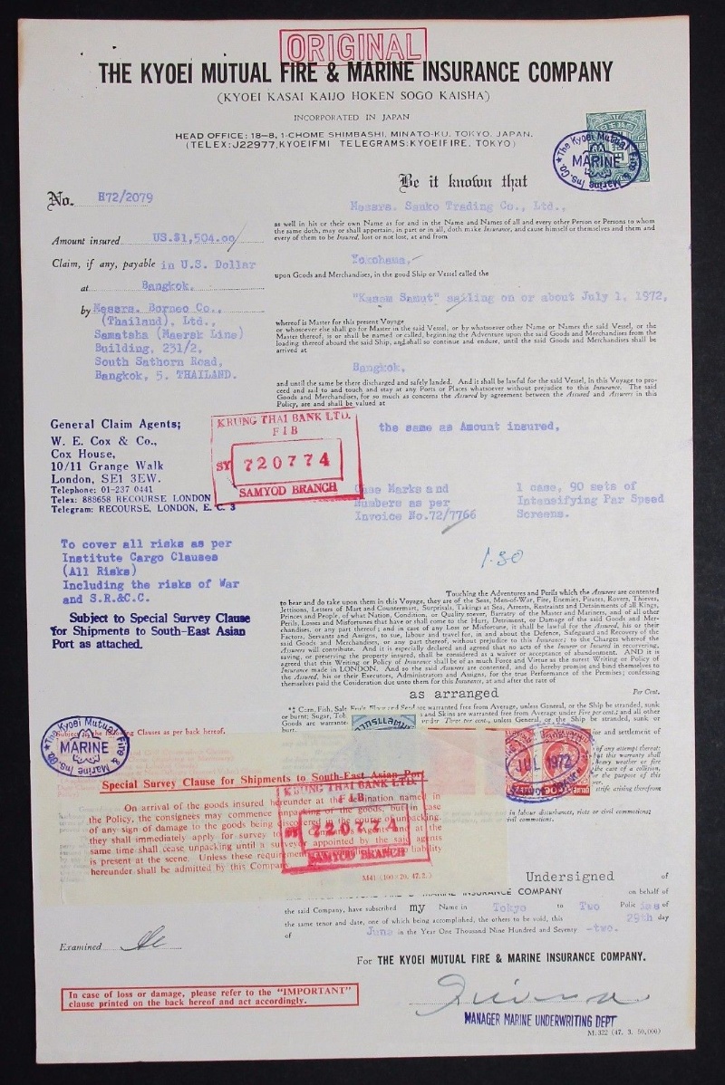 26 Feb THE KYOEI MUTUAL FIRE & INSURANCE COMPANY Posted at 07:43h in INSURANCE POLICIES & RECEIPTS, JAPAN, THE KYOEI MUTUAL FIRE & INSURANCE COMPANY by IICMuseum 0 Comments 0 Likes Share