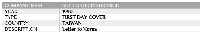 LABOR INSURANCE Posted at h in INSURANCE FIRST DAY COVER & LETTERS, LABOR INSURANCE, TAIWAN by IICMuseum 0 Comments 0 Likes Share