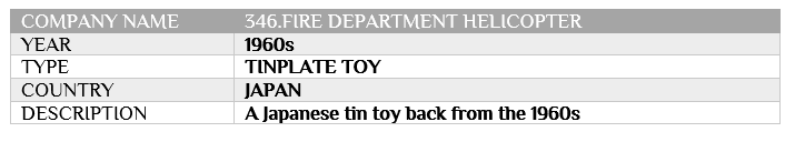FIRE DEPARTMENT HELICOPTER Posted at h in INSURANCE ITEMS, JAPAN by IICMuseum 0 Comments 0 Likes Share
