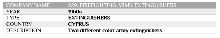 FIREFIGHTING ARMY EXTINGUISHERS Posted at h in CYPRUS, INSURANCE ITEMS by IICMuseum 0 Comments 0 Likes Share